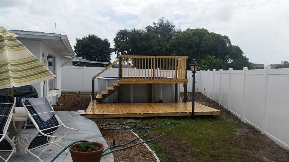 Adding on a deck not only extends your home, but also increases value, as well. We have been installing decks in the Central and Southern Florida areas for over 20 years. We take your ideas and create a masterpiece that you can enjoy for years to come. . No matter how big or small you wish your deck to be, we would love to be able to take the opportunity to show you what could be done with your property. Give us a call so we can get started.